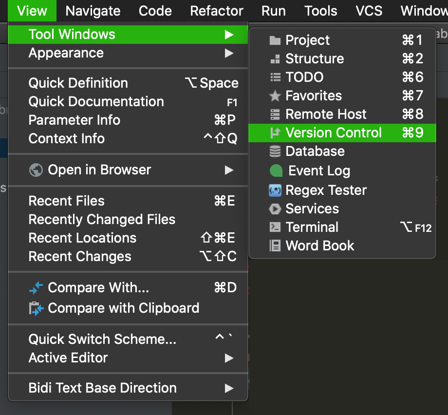 まずコミットしたかったブランチをcheck outして、『PhpStorm』ではメニューバーから